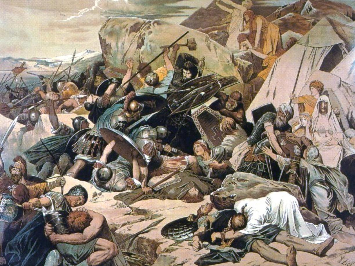 После завоевания Юстиниана и обширных программ восстановления казна империи осталась пустой. Финансовый беспорядок ослабил Империю; и заставил своего преемника Юстина II приостановить выплаты аварам . В то время как византийцы были отвлечены персами , орды лангобардов под командованием короля Альбоина вторглись в Италию и вскоре завоевали большую часть полуострова. Более поздние войны с персами в Сирии не шли хорошо, в результате чего возникло психическое заболевание, которое привело Юстина II в могилу.