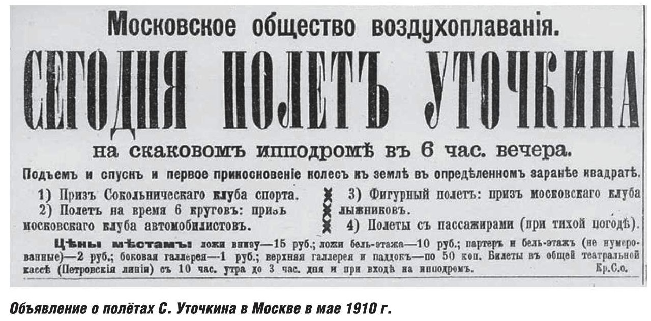 О предстоящих выступлениях его на скаковом ипподроме за Тверской заставой московские газеты известили заранее. Программа полётов включала несколько «номеров»: эволюции в воздухе, спуск с остановленным мотором, подъём с пассажиром, посадка в намеченном месте и в заключение – метание «бомбы».