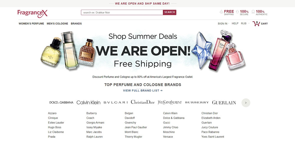Когда потенциальный заказчик ищет в сети Интернет лучшие магазины духов иностранных сайтов, он не сможет пройти мимо американской площадки FragranceX. Здесь можно найти практически любой парфюм по своему вкусу и финансовым возможностям. Также в магазине широкий ассортимент средств макияжа.