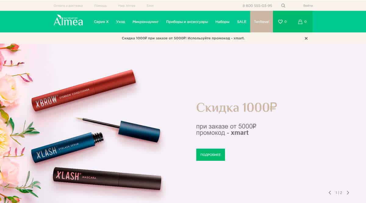 Классический интернет магазин косметики и приборов для ухода за кожей, доступный исключительно для онлайн заказов. На сайте можно найти широкий ассортимент косметики под брендом Almea, наборов для макияжа и аксессуаров для женщин. Здесь можно найти гидрогелевые патчи, скрабы, масла, крема и витамины.