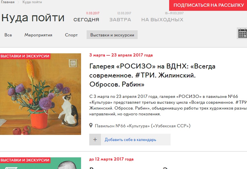 Мероприятия проводятся как администрацией ВДНХ, так и арендаторами. Посмотреть расписание выставок и экскурсий можно в разделе «Куда пойти» официального сайта, воспользовавшись одноименным фильтром.