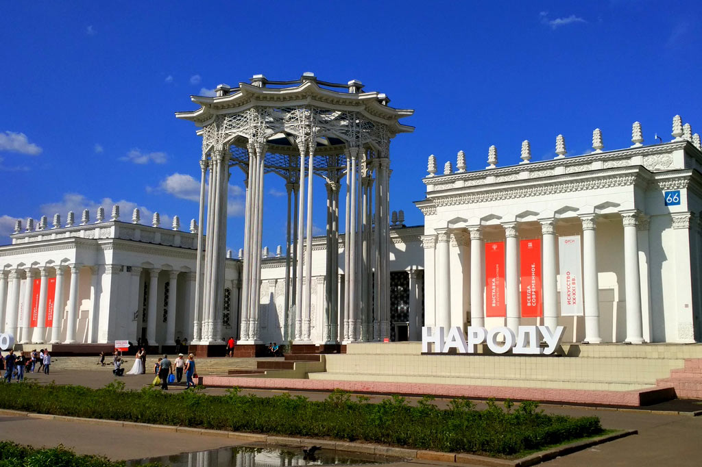 Чтобы было удобнее сверяться с картой ВДНХ, начнём обзор павильонов с главного входа и пойдём по кругу, по часовой стрелке.