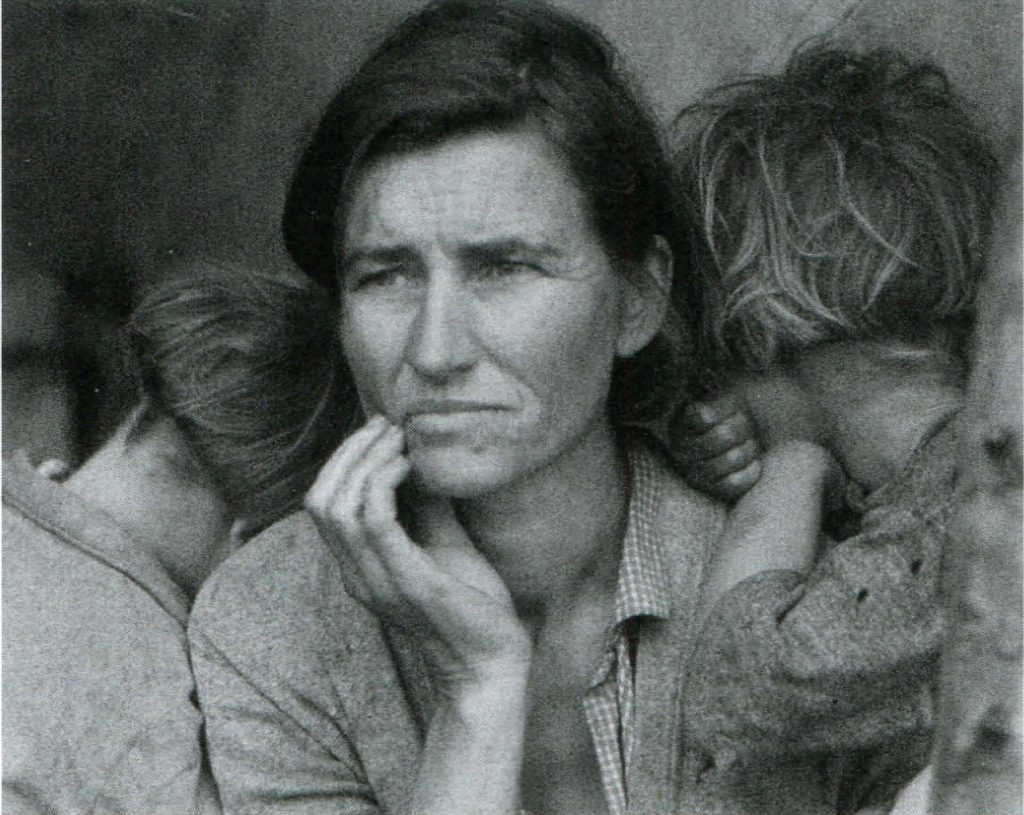 Один из самых известных снимков периода Великой депрессии — «Семья сборщиков гороха во время кризиса». На фото Доротеи Ланж изображена 32-летняя Флоренс Оуэнс Томпсон, мать семерых детей. Кадр сделан в марте 1936 года в Нипомо, штат Калифорния.