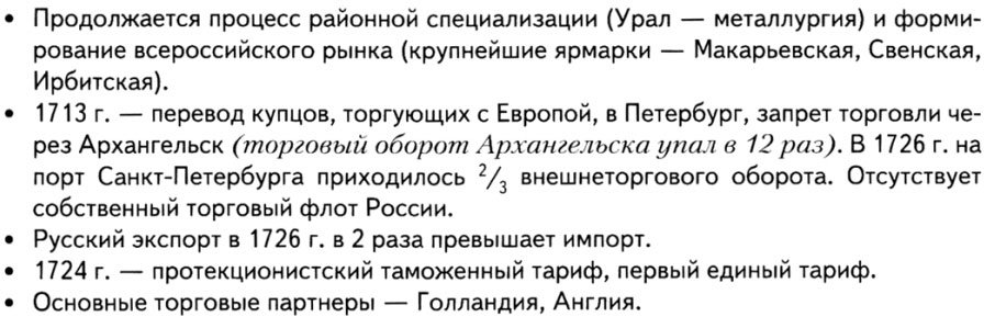 Экономическая политика Петра 1 в области торговли в целом соответствует общему развитию страны. Торговля также развивалась по протекционистскому пути развития.