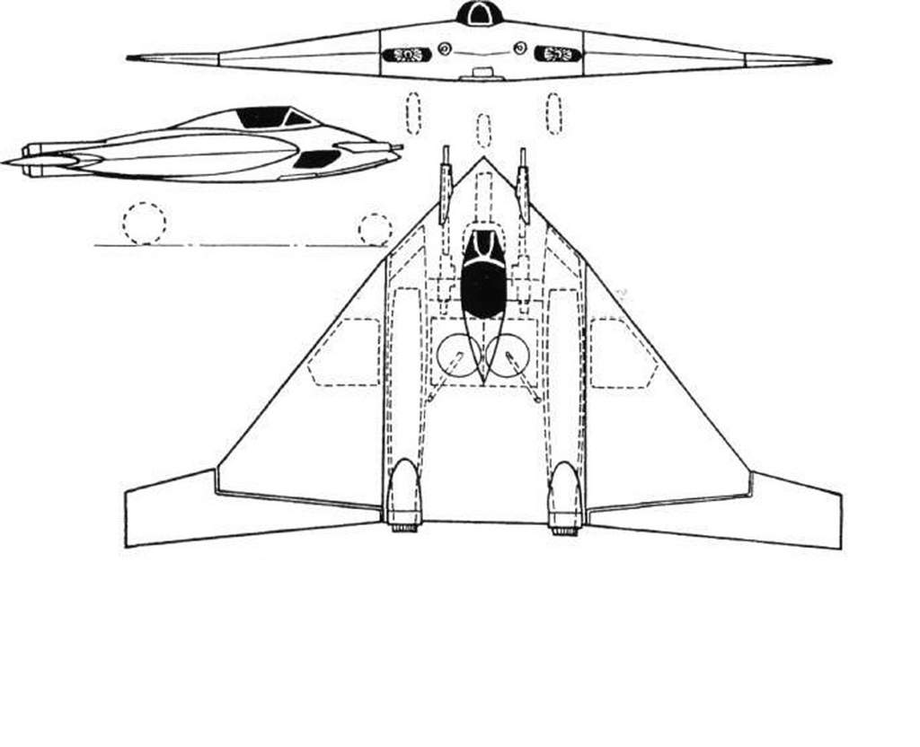 схема проекта реактивного истребителя схемы «летающее крыло» БИЧ-24