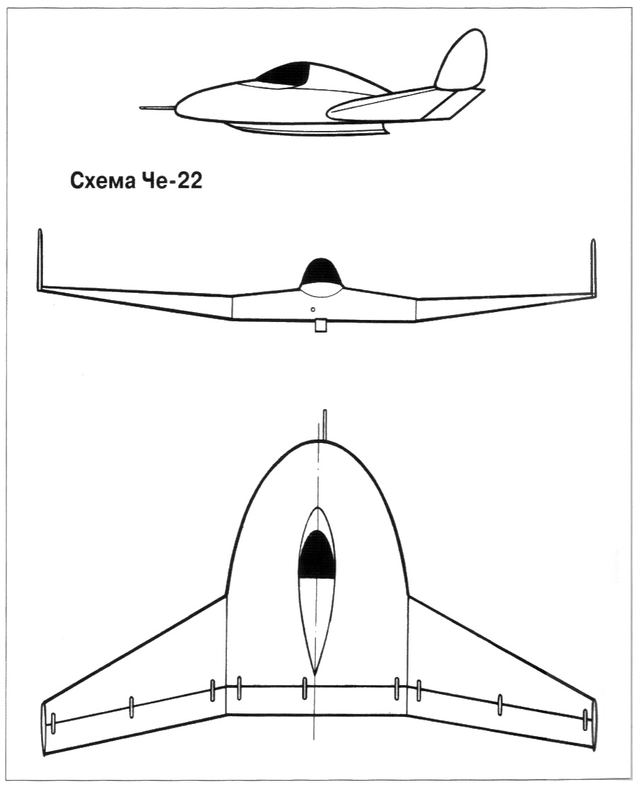 Среди самолетов, продемонстрированных на параде, был небольшой планер компоновочной схемы «летающее крыло». Этим планером был Че-22, управляя которым летчик И. А. Петров перед собравшейся там публикой продемонстрировал фигуры сложного пилотажа. Ведущий объявил, что данный образец является учебным планером, разработанным для подготовки пилотов сверхзвуковых реактивных перехватчиков с такой же компоновочной схемы.