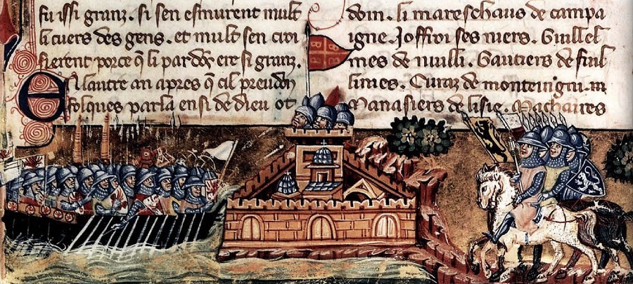 - Фламандский авангард графа Балдуина Фландрского, чьей задачей было обеспечить высадку армии с помощью большого количества находящихся в его рядах арбалетчиков и лучников;