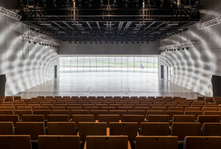 Во втором, меньшем театре, интерьер стен плавно соединяется с внешним большим панорамным окном за сценой. Эта стена из звуконепроницаемого стекла обеспечивает естественный живописный фон для выступлений.