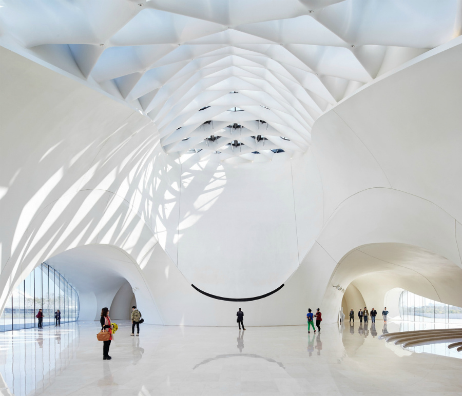 Вот вам пример современного оперного театра в северном китайском городе Харбин. В 2010 году архитектурная фирма MAD Architects выиграла открытый международный конкурс и построила не просто оперное здание, а целый комплекс, в который входят два здания — большой и малый театры. Большой вмещает в себя зал на 1600 человек, а малый — на 400, и расположены они на территории общей площадью в 444 акра.