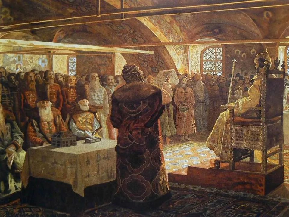 «Царь Иоанн IV открывает первый Земский собор своею покаянною речью». Картина Клавдия Лебедева