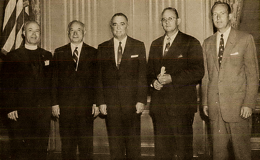 Второй слева Давид Сарнов, третий — директор ФБР Джон Эдгар Гувер. Благодаря Сарнову вопросы ФБР к Зворыкину были сняты